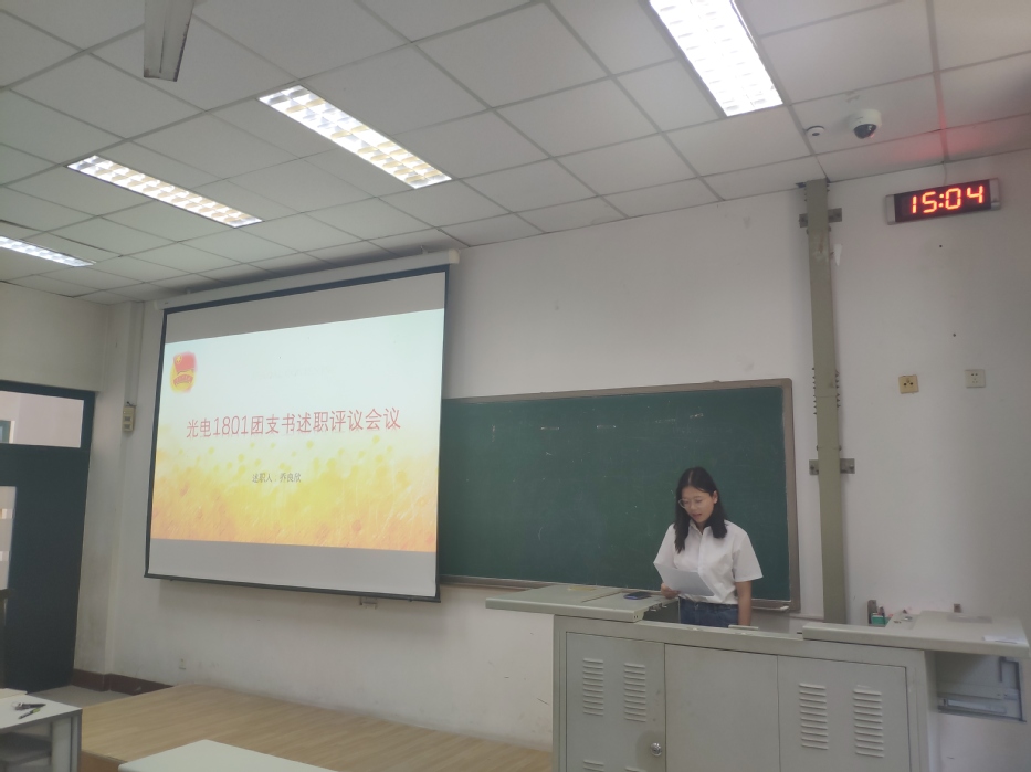 9月22日,为进一步落实从严治团,加强团支部书记履职尽责的能力,光电1801团支部于南堂101开展团支书述职评议大会。会议主要分为两个阶段,团支书自评阶段和团员评议。此次大会由光电1801团支书乔良欣主持,全体团员参与。