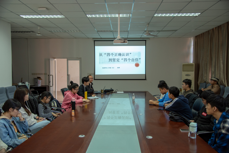 为加强对员工的思想引领,提高员工思想认识水平,增进学校员工工作部门领导与员工的直接联系,切实推进“三全育人”,10月14日,学校员工资助中心主任陈熙老师为化学1801班员工开展从“四项正确认识”到坚定“四个自信”的主题教育活动,化学1801班全体员工参加。