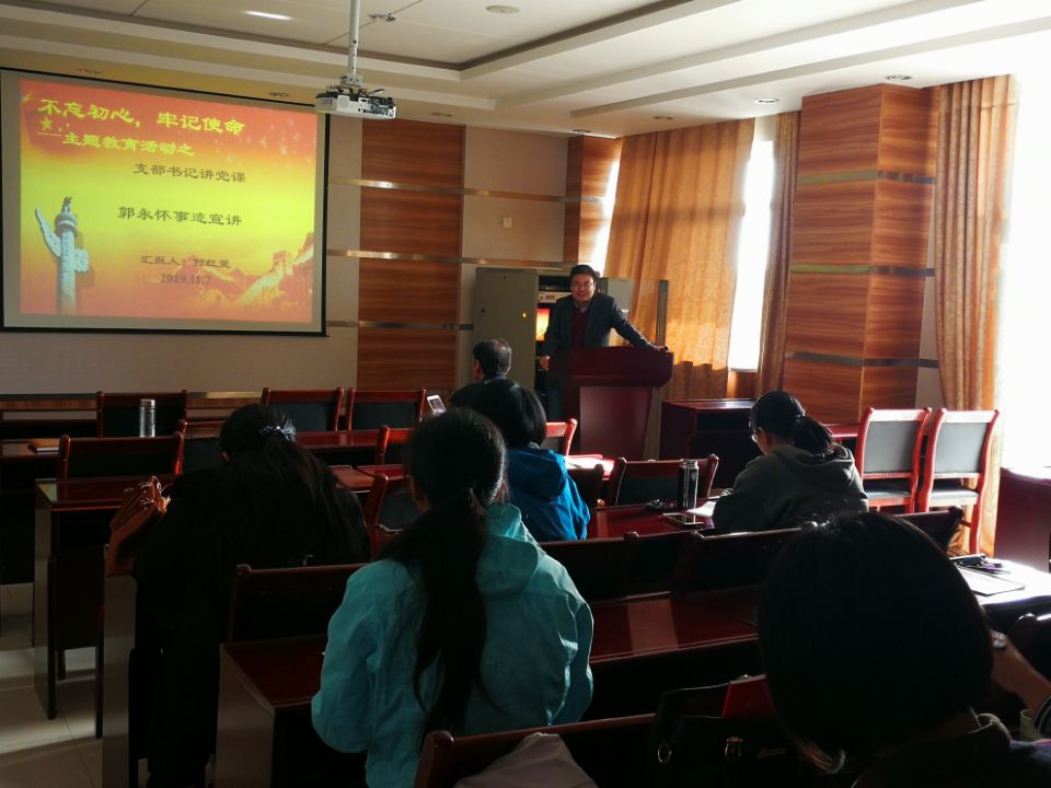 为扎实推进“不忘初心、牢记使命”主题教育,进一步提高广大党员的政治意识, 11月7日上午,基础数学党支部书记付红斐以《郭永怀事迹宣讲》为主题,为支部全体党员上了一堂意义深刻的党课。