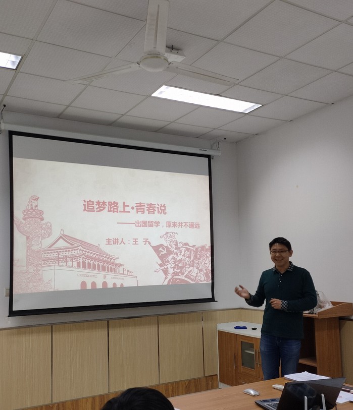 为进一步活跃研究生学术思想,促进党支部内的思想交流、经验分享,激励全体党员立足科研岗位永葆先进本色,同时进一步推进研究生的国际交流工作, 11月18日晚,太阳成集团tyc9728博士生党支部联合团支部于基础实验楼C307举办以“追梦路上·青春说”为主题的留学经验交流会。本次活动由太阳成集团tyc9728博士党支部书记黄招娣同志主持,曾赴英国联培留学的16级博士生王子同志主讲,太阳成集团tyc9728部分博士生、研究生参加。
