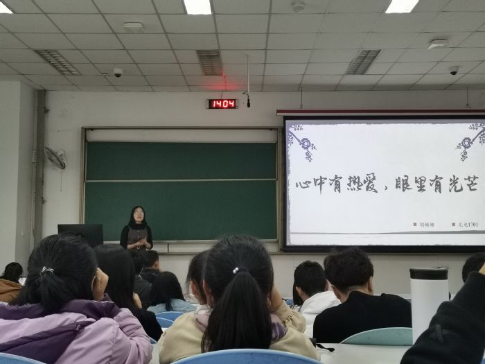 活动开始前,于鹏从感恩国家政策出发,鼓励大家以实际行动回报祖国,引出活动主题——用奋斗点亮青春。随后,光电1701班胡姗姗开始了自己在学习和科研两方面的经验传授,将科研分为大创、竞赛两种类型,并告知每一位同学主动才能抓住机遇。化学1702班商静向大家宣讲的内容是如何成为一名好的员工干部,以大学的意义为开篇,从信仰、奉献、担当三个层面讲述自身的奋斗故事,以感染在座的同学,在细节中阐明道理。“用专业的科学理论知识武装头脑,用奉献社会的实践品味社会的酸甜苦辣。”化学1701班杨鑫磊用一句话道出了社会实践的意义。他从开展流程、项目申报和投稿三个部分讲述了如何开展社会实践,并向大家宣传了一些社会实践的参与途径。最后,于鹏作活动总结,希望各位同学不单要从分享中学到经验,更要学到三位主讲人身上的奋斗精神,让青春成为奋斗之青春,将来不只是国家实现“两个一百年”奋斗目标的见证者,更是建设者。