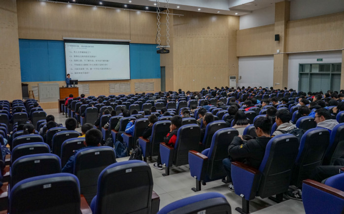 大会伊始,周晓东对大一新生常见的心理矛盾以及它们的起因和调整方法进行分析。紧接着,周晓东与新生分享心理健康的标准、环境对人心理的塑造作用、恋爱及人际交往等生活问题,用一些事例去鼓励员工应保持积极健康的心态去健康成长。然后,孟兆刚从知识、行为、思想三个方面启发员工,他鼓励新生从内容枯燥的专业知识中培养学习能力,鞭策全体同学从模仿开始进行创造活动,主动倚靠第二课堂锻炼综合能力,主动寻求就业指导等。孟兆刚强调:“一切的根源在于思想,当行为、知识的学习都进行到底时,支持一个人仍然感觉快乐的是他思想的力量”。最后,孟兆刚呼吁新生在老员工活中要保持知识、行为、思想学习的相互平衡。