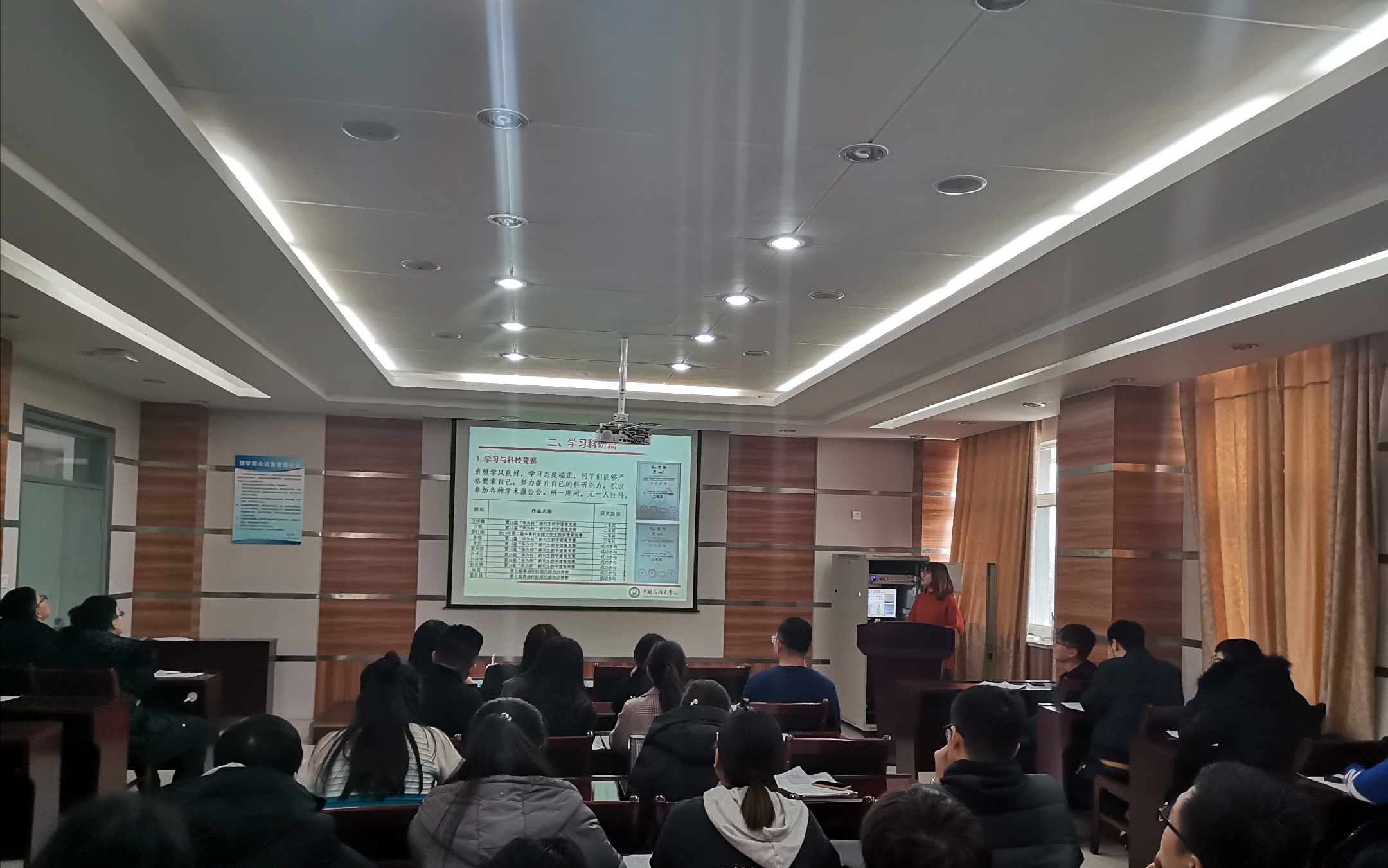 11月26日,太阳成集团tyc9728于文理楼254会议室举行2018——2019学年先进班集体、中石油奖学金、优秀研究生以及优秀研究生干部等答辩评审活动。理公司研究生辅导员田方主持答辩会,各班级、研究生会、党支部员工代表参与投票。