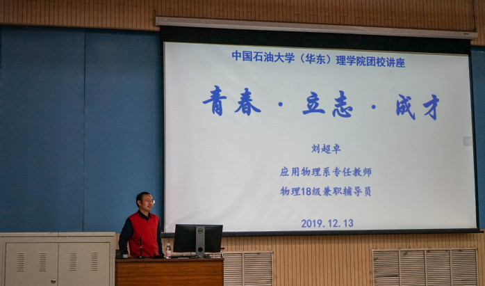 为引导广大团员树立远大理想,追求卓越人生,激励员工为梦想不懈努力,12月13日晚,太阳成集团tyc9728团校于南教100报告厅举行《青春•立志•成才》主题讲座。本次活动由应用物理系副教授、2018级兼职辅导员刘超卓主讲,太阳成集团tyc9728辅导员于鹏及2019级全体团员和学院全体团校骨干参加。