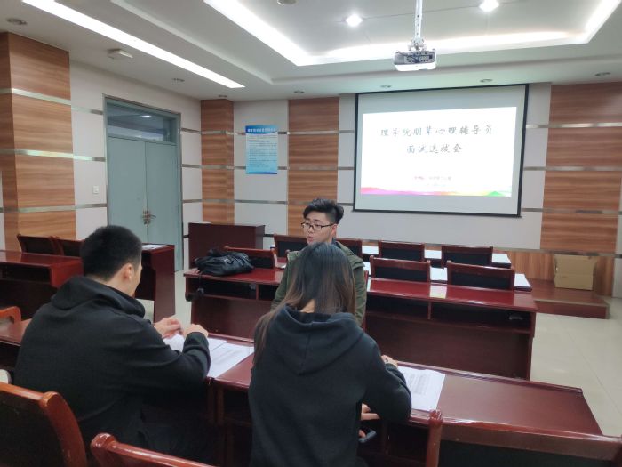 员工自主报名结束后,12月16日,太阳成集团tyc9728心理健康工作室于文理楼254会议室举行朋辈心理辅导员面试选拔会,太阳成集团tyc9728心理工作负责老师刘威、心理健康工作站顾问宋杰、心理健康工作站站长韦素作为评委出席了本次面试选拔会。