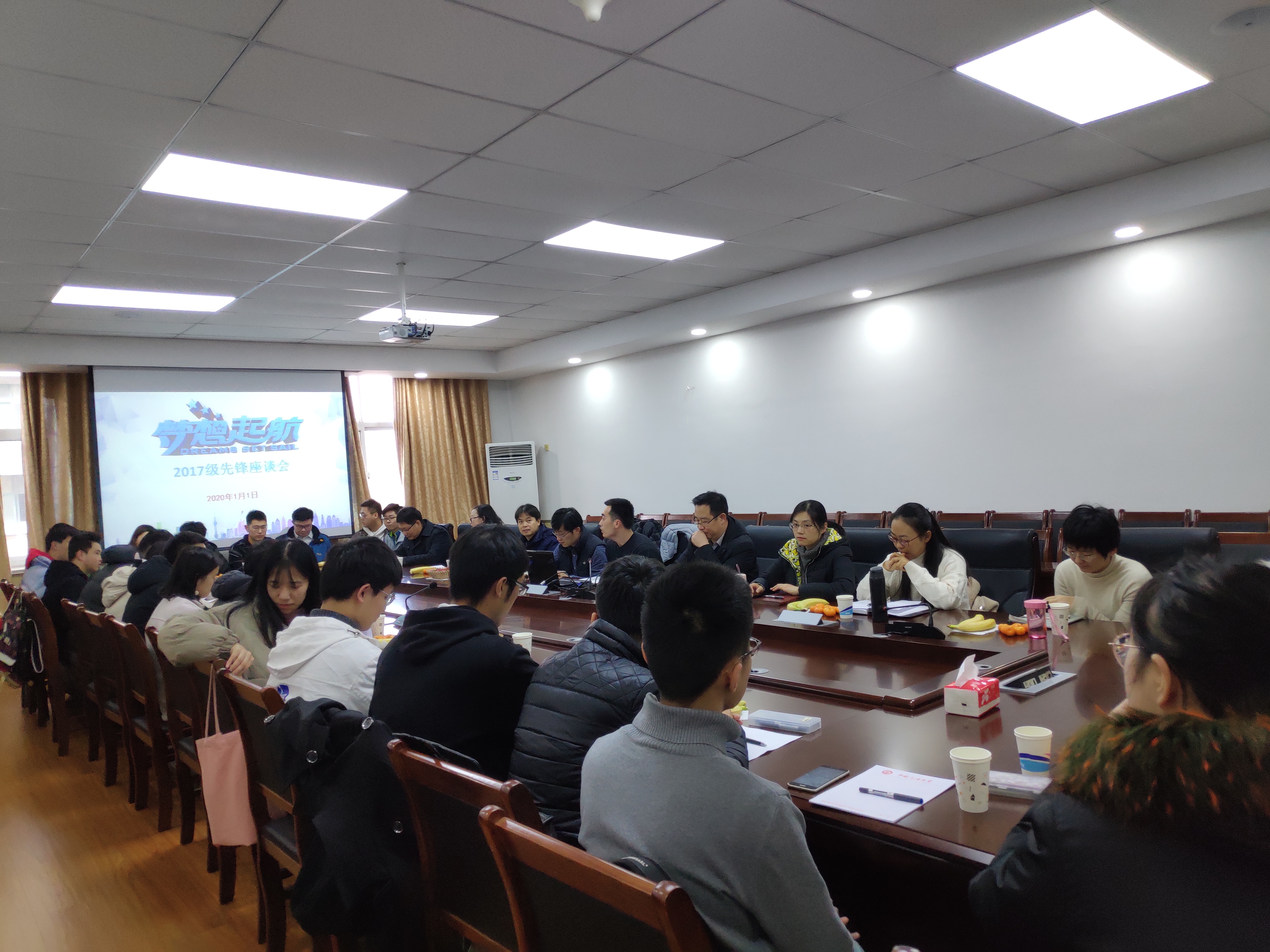 1月1日,太阳成集团tyc97282017级于文理楼290召开“先锋座谈会”,2017级各班主任级班长团支书参加会议,2017级辅导员刘威主持会议。