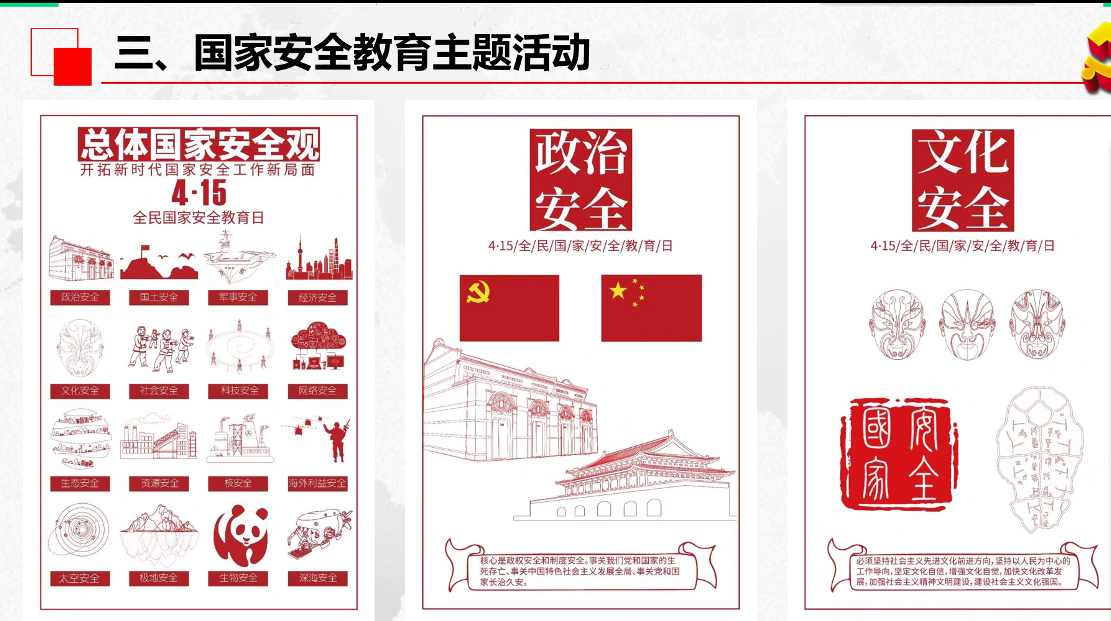 活动前期,团支部动员并开展了“一次线上国家安全教育主题讲座、一次线上同看一部国家安全教育影片、一次国家安全教育主题征文活动、一次国家安全知识有奖问答活动”。国家安全教育日当天,老员工国家安全教育主题班会以线上形式开展,团支书商静呼吁支部成员树立总体国家安全观,做国家安全和利益的自觉维护者,并组织讨论“如何以实际行动维护国家安全”。支部成员马雪说:“参加这次活动,我认识到我们要自觉维护国家安全的责任和义务,要远离诱惑、保持谨慎,为维护国家安全作出自己应有的努力。”