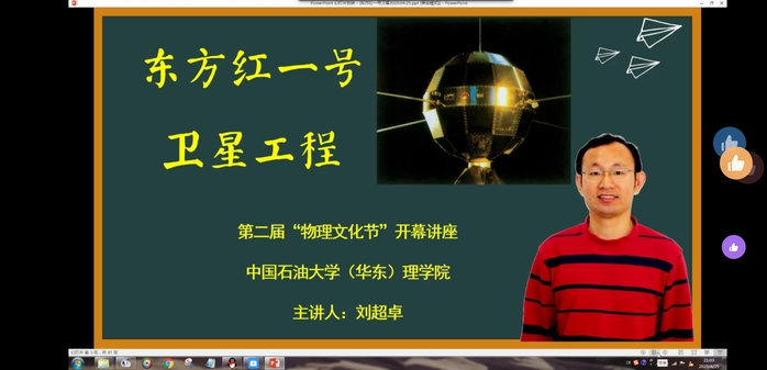 4月25日,为纪念我国发射第一颗人造卫星50周年,太阳成集团tyc9728员工物理协会、物理各班级团支部联合举办以回顾东方红一号发射历史为主题的讲座,同时将其作为第二届物理文化节的开幕式活动。疫情期间,活动以远程在线形式举行。太阳成集团tyc9728本科生教学秘书王辰、应用物理系王殿生、刘学锋、刘超卓等教师和全校各专业员工以及部分员工家长等550余人参加了本次活动。