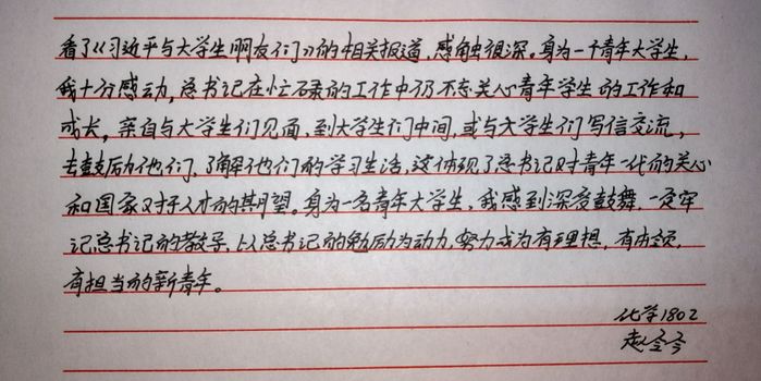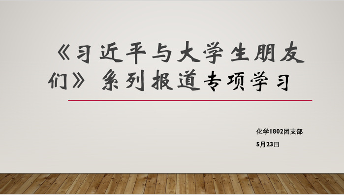 为响应团委号召,进一步学习习近平总书记对广大青年员工的谆谆教诲,把习近平总书记对青年老员工的关怀厚爱传递到广大青年的心上,化学1802团支部于5月23日组织开展组织学习《习近平与老员工朋友们》系列报道,团支书孟新主持,团支部全体成员参加本次线上学习。