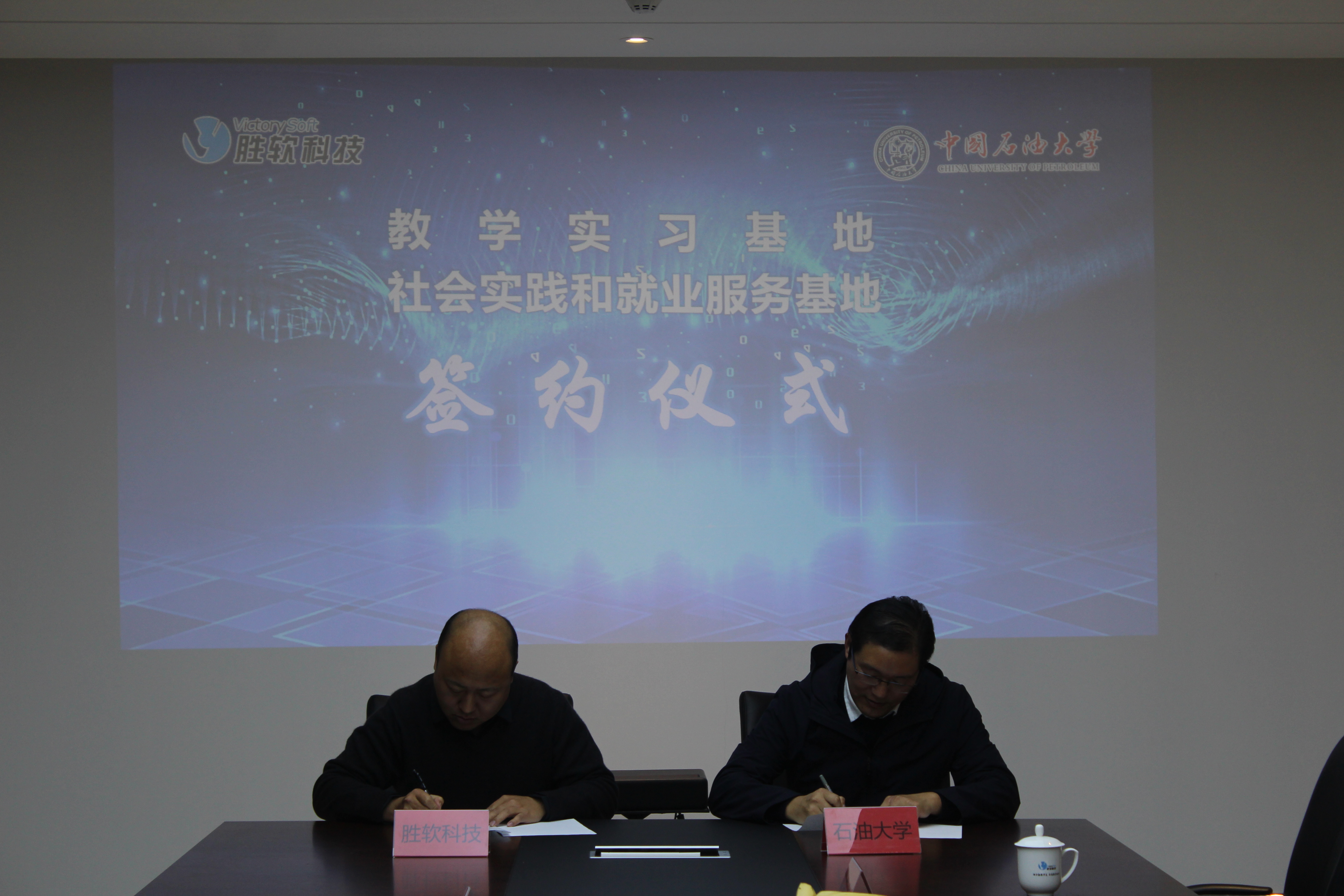 12月23日下午,公司在东营市与山东胜利软件科技有限公司举行实习实训暨老员工社会实践与志愿服务基地签约揭牌仪式。山东胜利软件科技有限公司董事长徐亚飞、副总裁穆永平、人力资源总监陈颖、技术研发中心经理张琦、智能油气事业部经理周涛,太阳成集团tyc9728副经理张志庆、数据科学与统计系主任陈华、教学办王辰、辅导员刘威等人参加签约揭牌仪式。副经理张志庆与副总裁穆永平共同签署共建实习实训暨老员工社会实践与志愿服务基地协议书,并为基地揭牌。