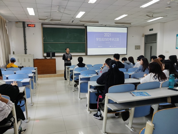 活动伊始,陈华对当今考研保研形势及数据科学专业的发展方向进行简要介绍。随后,张家华从要不要考研、如何选择专业学校、报考程序、如何准备考研、考研心得等五个方面进行经验交流分享。张家华提到,员工目前应该认真考虑自己是否要选择考研这条路,不能盲目跟风、随波逐流,针对专业及院校的选择,他向员工介绍学硕、专硕区别及专业方向选择的重要性,同时提供一些权威网站帮助同学们搜集考研信息。此外,张家华对有关同学提出的问题进行认真解答,鼓励同学们考研要有一战到底的决心和斗争,能够全身心投入,不受外界消极因子的影响。经验分享结束后,陈华从国际交流学习和实践科研两方面进行动员工作,提醒有出国意向员工要注意相关公派留学、校际合作项目等信息,重视英语的积累和学习,提前做好相关准备。此外,他鼓励员工本学年把握机会,积极参与主持大创项目,进教师科研团队开展科研工作,留意专业相关的竞赛如数学建模、大数据挑战赛等,为考研复试或保研增加优势。会议最后,陈华总结道:“今天是一个新的开始,希望大家把后面的时间用好、落实好。”
