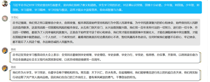 员工学习党的历史,对正确认识党情、国情十分必要。少年强,则国强。少年智,则国智。理科实验班1801团支部成员均表达对习近平总书记所提内容的赞同,表现了认真学习党史的决心。