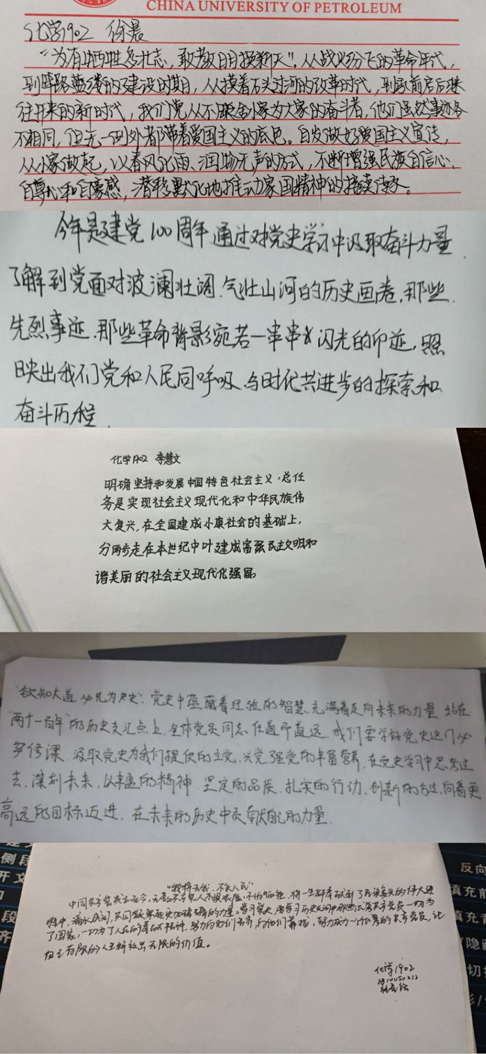会议采用线上形式进行,团支书周钰由习近平主席的一段话开始会议,“‘大鹏一日同风起,扶摇直上九万里。’100年来,中国共产党秉持为中国人民谋幸福的初心、为中华民族谋复兴的使命,不畏艰难险阻,不惧流血牺牲,团结带领全国各族人民浴血奋斗、发愤图强、改革开放,中华民族迎来了从站起来、富起来到强起来的伟大飞跃。”回顾历史,中国共产党历经百年荣辱,有成就也有失败,这其中艰辛与成果值得同学们深深体会。“今年是建党100周年通过对党史学习中汲取奋斗力量了解到党面对波澜壮阔、气壮山河的历史画卷,那些先烈事迹、那些革命背影宛如一串串闪光的印迹,照映出我们党和人民同呼吸,与时代共进步的探究和奋斗历程”李旻同学在结束党史教育大会之后如是说道。