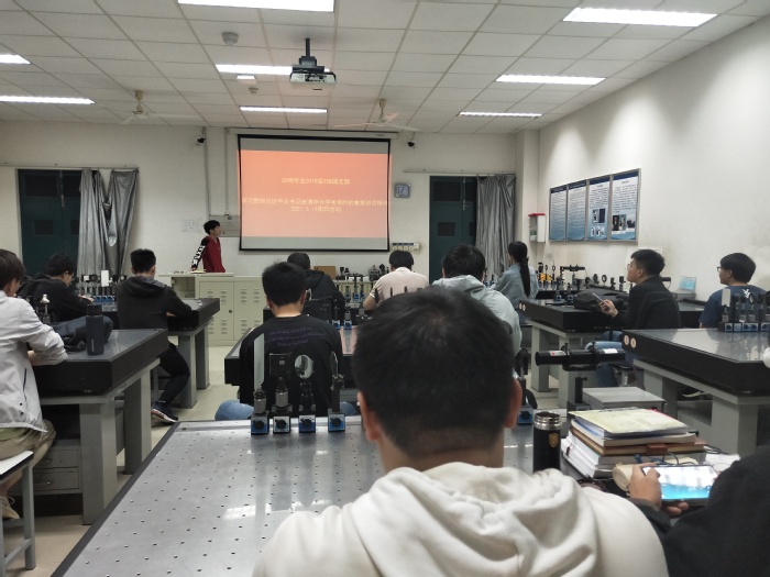 本次主题班会由物理1802团支书朱帅霏主持,团支部全体成员参加。班会伊始,朱帅霏概括讲述了习近平总书记重要讲话的主要内容,并组织观看了相关重要新闻报道,团支部成员产生了很大共鸣。党员和预备党员代表发表了对于观看这次学习的感悟。其中,周欣鹏同学说到:“习近平总书记视察清华大学重要讲话,是给全国所有青年学子的谆谆教诲。朱帅霏同学倡导全体成员牢记新时代老员工的历史使命,将习近平总书记重要讲话精神落实到生活中的一言一行当中。至此,本次活动圆满落下帷幕。