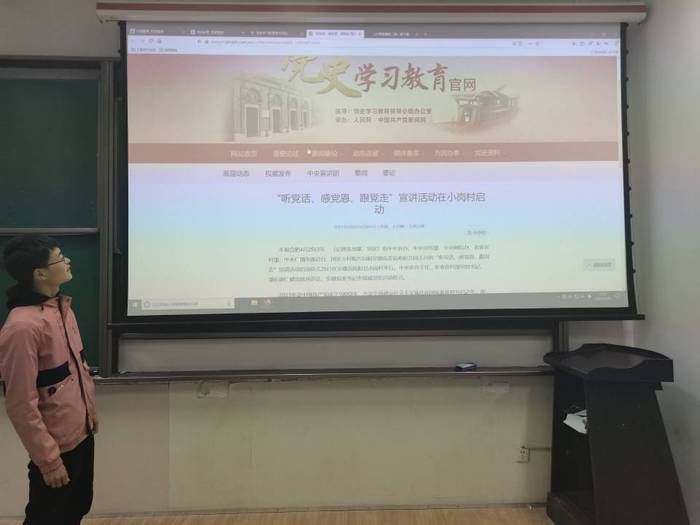 首先,团支部书记张嘉宁同学通过PPT和讲稿,带领大家学习习近平总书记重要讲话的内容及精神,向年轻人宣传党的政治理论、光辉历史和辉煌成就,引导大家主动向党组织靠拢。