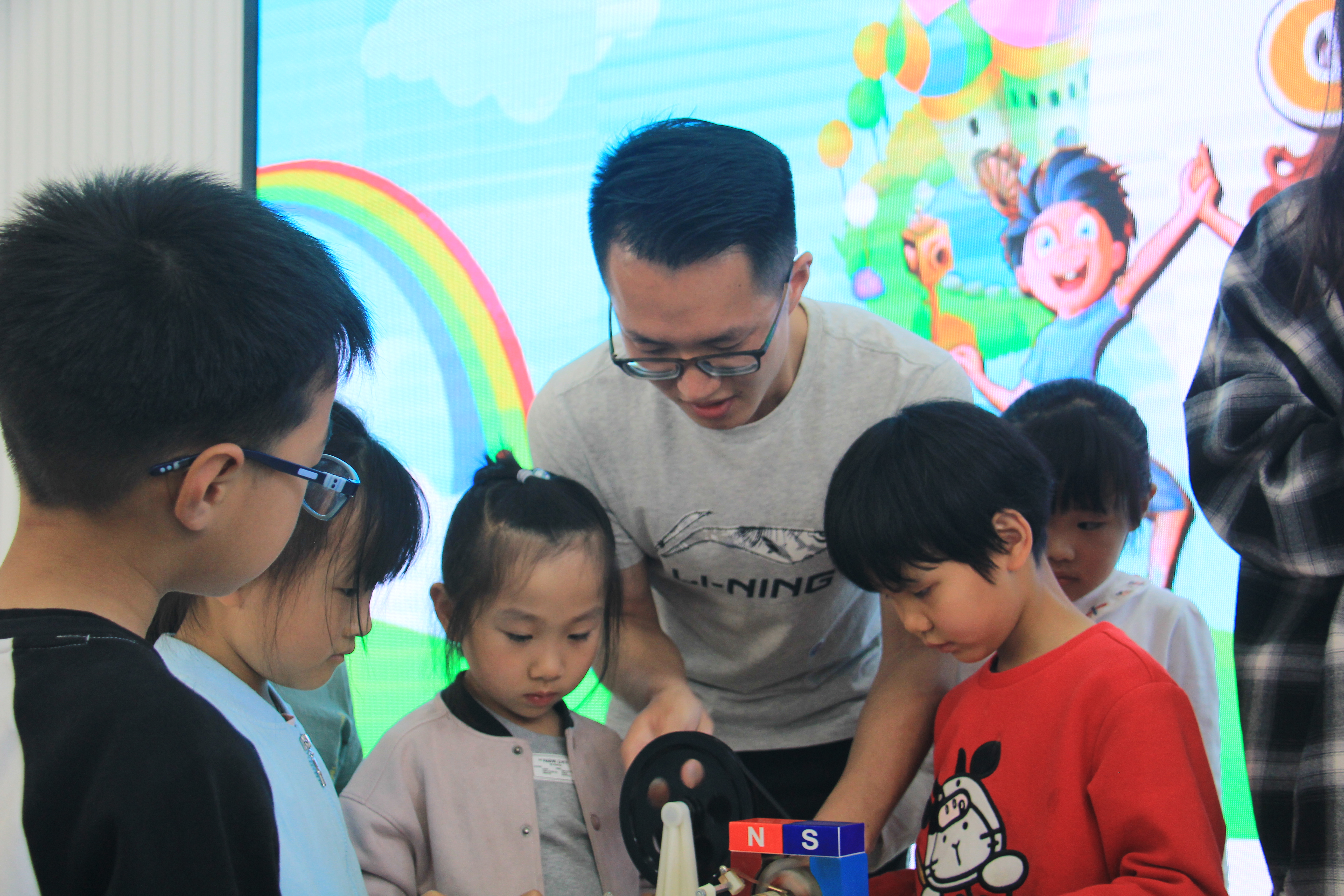 小朋友们全神贯注地看着、专心致志地听着,虽然他们目前还不能完全理解背后复杂的科学原理,但是神奇的力、热、光、电的物理世界,已经在一颗颗幼小的心灵中深深埋下了好奇的种子。