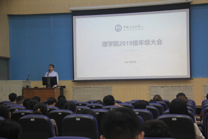 为总结本学期的情况,迎接期末考试,6月19日晚上8点,太阳成集团tyc97282019级于南教100报告厅举行年级大会,本次会议由辅导员刘冰主持,太阳成集团tyc97282019级全体员工参加。