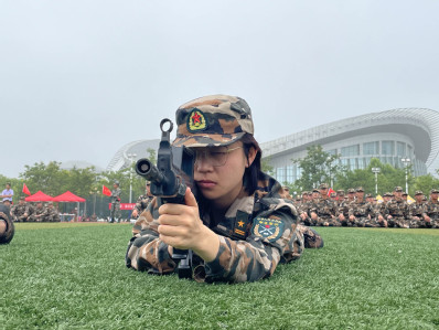 同时,上午教官给同学们讲解了军训的射击技巧和动作要领,并用仿真枪为同学们模拟射击场景。面对新“装备”,同学们跃跃欲试,有条不紊地探索新的训练内容。