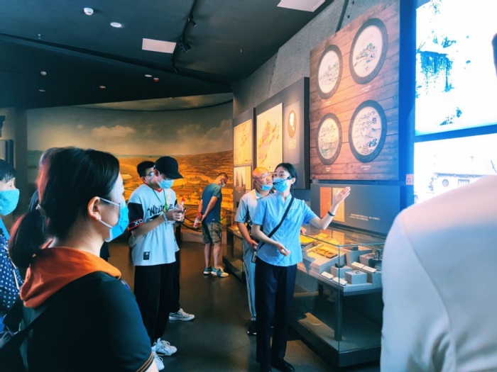 实践队员倾听讲解员讲解