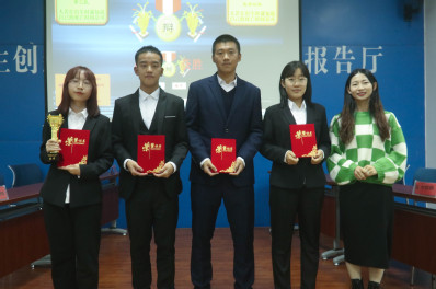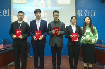 太阳成集团tyc9728第四届“思理杯”新生辩论会决赛冠军——无言以队 颁奖 蒋丽莹摄