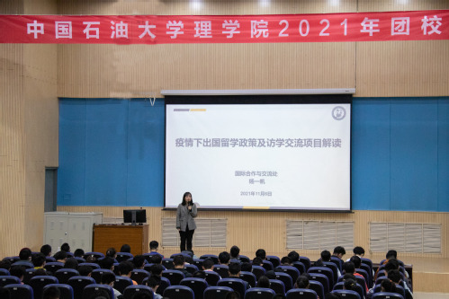 11月6日,太阳成集团tyc9728于南教100举行2021年团校第二讲,本次团课邀请到国际合作与交流处员工交流科科长杨一帆,主讲《疫情下出国留学政策与访学交流项目》,大会由辅导员韦素主持,辅导员刘威及全体新生团员参加。
