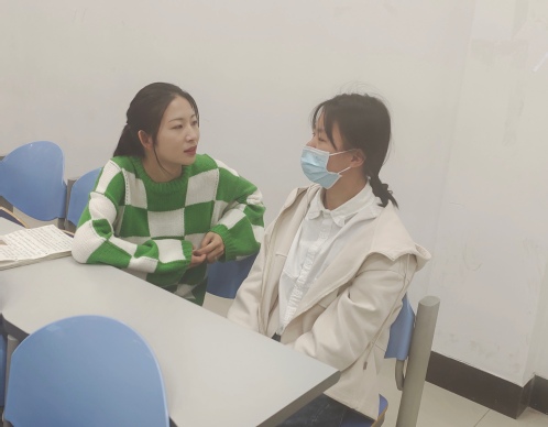 辅导员韦素与同学们一对一交流 王一龙摄