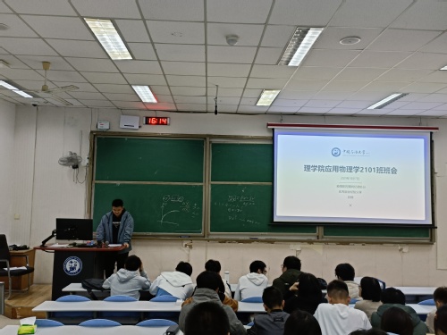 11月17日,应用物理学2101班于西环101召开班会。班会由班长王一龙主持,辅导员韦素及全体班级同学参加。