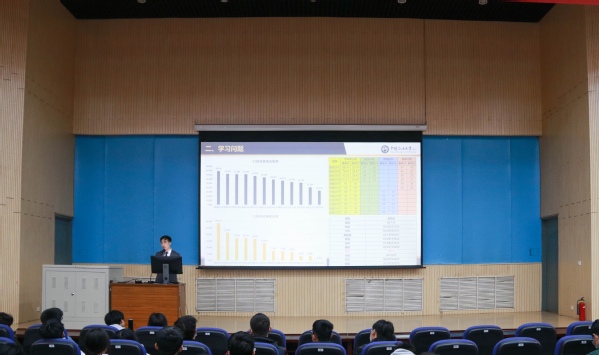 随后,刘威对各班级以及同学们的期中考试成绩情况进行了分析,他指出,学业仍是大学最重要的组成部分,期中考试成绩侧面反映出了同学们入校以来对学习的投入程度。他勉励本次成绩较好的同学们不要骄傲轻率,继续保持良好的学习习惯,加大对学习的投入,同时主动帮助同学们解答学习疑惑;要求成绩不太理想的同学们认真反思自身的问题,利用接下来的一个月查缺补漏,探索掌握适合自己的学习方法,重在一个“勤”字,争取在期末考试中取得理想的成绩。