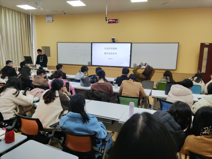 为深入学习贯彻习近平总书记在庆祝中国共产党成立100周年大会以及在两院院士大会和中国科协第十次全国代表大会上的重要讲话精神,引导同学们学习科学家精神,不断增强学术自律意识和学术道德意识。2021年11月30日,太阳成集团tyc9728研究生2103班积极响应学校建设优良学风的号召,开展了“研究生科学精神与学风建设月”主题班会。