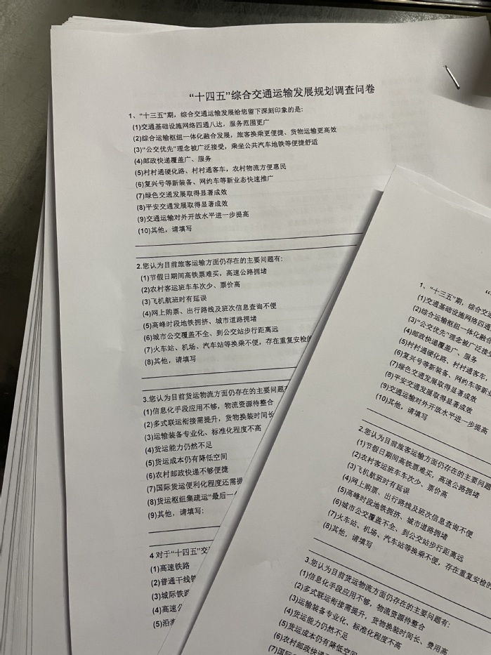 1月22日,社区民意调查,以沧滩社区全体居民为对象,收集并分析群众对于建德市“十四五”综合交通运输发展规划的意见与看法。实践伊始,封政根据先前对建德市“十四五”综合交通运输发展规划的初步了解设计问卷,并在附近广告公司打印调查问卷80份。随后前往人流较多的社区农贸市场进行调查。随后,因农贸市场的人们大多忙于购物,无暇填写调查问卷,封政遂前往社区挨家挨户上门进行民意调查。下午4点后,考虑到广场上人流较多,封政前往新安江老广场进行调查。最终完成了80份问卷的民意调查。