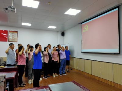 会议由支部书记朱海丰同志主持。与会的14位党员和王军老师进行了亲切交流,朱海丰代表支部为王老师送上慰问保健品,并叮嘱王老师兼顾科研工作同时注意保重身体。最后14名党员,佩戴好党徽,排列整齐,在领誓人朱海丰的带领下庄严面对党旗宣誓,重温了入党誓词。满怀激情的宣誓让与会党员深受感染,思想得到了进一步升华,大家纷纷表示要在平凡的教书育人工作中,继续发挥党员模范带头作用。