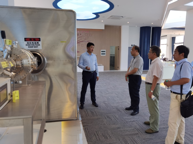 会前,魏宝君一行在赵继飞陪同下参观了园区中心展厅、生产载体建设,详细了解赵继飞向物理学科捐赠的仪器设备情况。