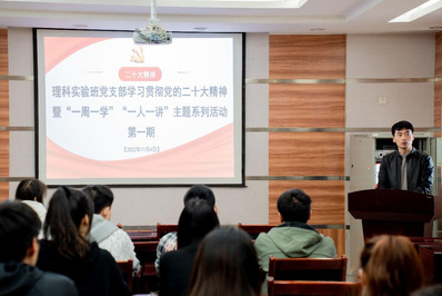 会上刘威结合支部日常工作分享了党的二十大报告学习心得体会,并表示通过在理科实验班党支部开展“一周一学”“一人一讲”系列活动,引导支部成员深入学习党的二十大精神;通过开展“一周一实践”活动,助推支部成员“一人一特色”,打造特色理科实验班党支部。本学期要将“四个一”工程落实落地,在理科实验班党支部掀起党的二十大精神学习热潮。