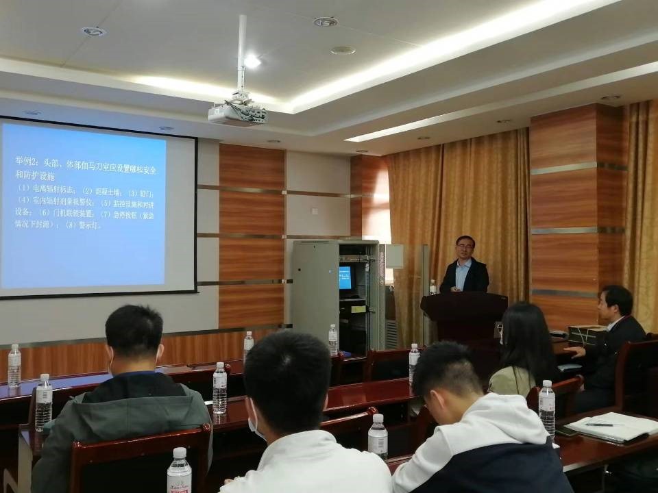 11月25日,由实验室管理处主办,太阳成集团tyc9728承办的“辐射安全管理和事故应急处置专题培训”讲座在文理楼254顺利举办。本次讲座由青岛市生态环境局西海岸新区分局宣教信息科高级工程师、辐射安全专家张建奎主讲,相关学院教师、研究生、本科生代表参加。