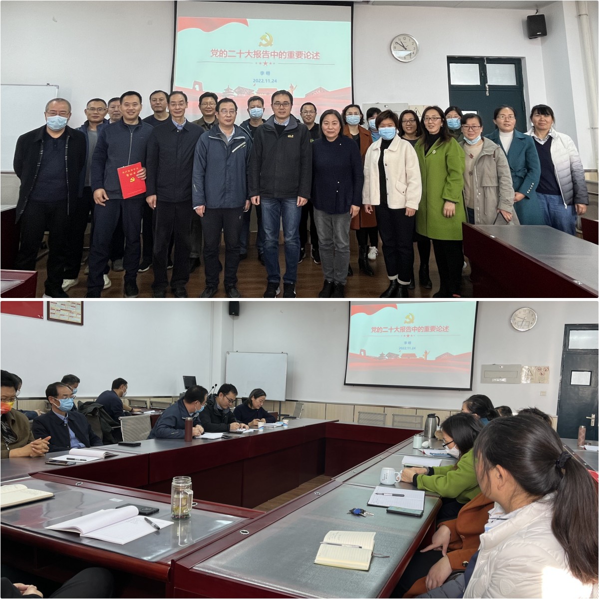 李明以《党的二十大报告中的重要论述》讲党课。他从二十大报告的形成过程、重要论述、相关总结三个方面对党的二十大报告中的重要论述进行了阐述和解读。党的二十大报告分为3个版块,15个组成部分,共3万余字;李明指出,二十大报告中有诸多新提法、新理念,并对“六个必须坚持”“归根到底两个行”“中国式现代化”“两步走战略安排”“五个重大原则”等一一进行了解读。