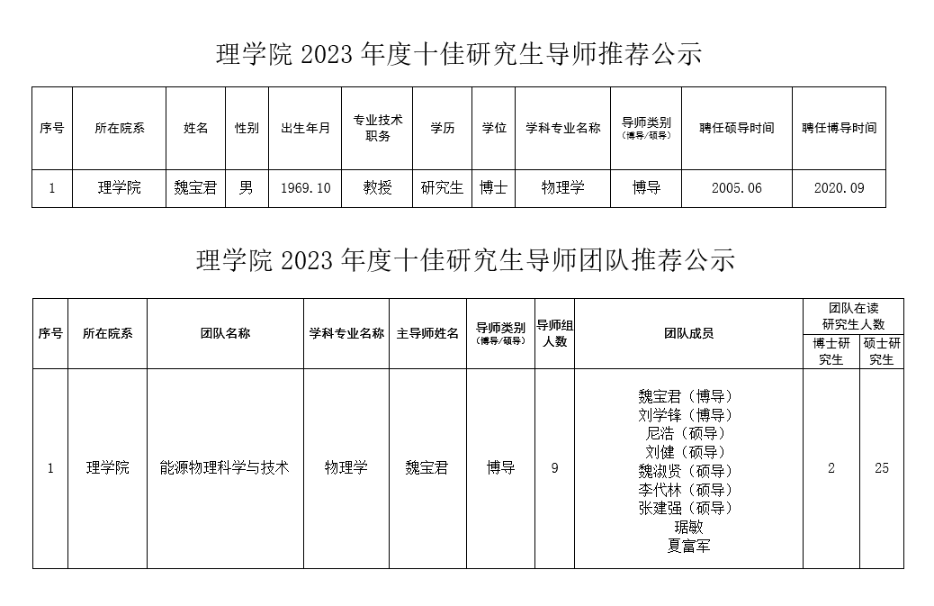 太阳成集团tyc97282023度十佳研究生导师和十佳研究生导师团队推荐公示