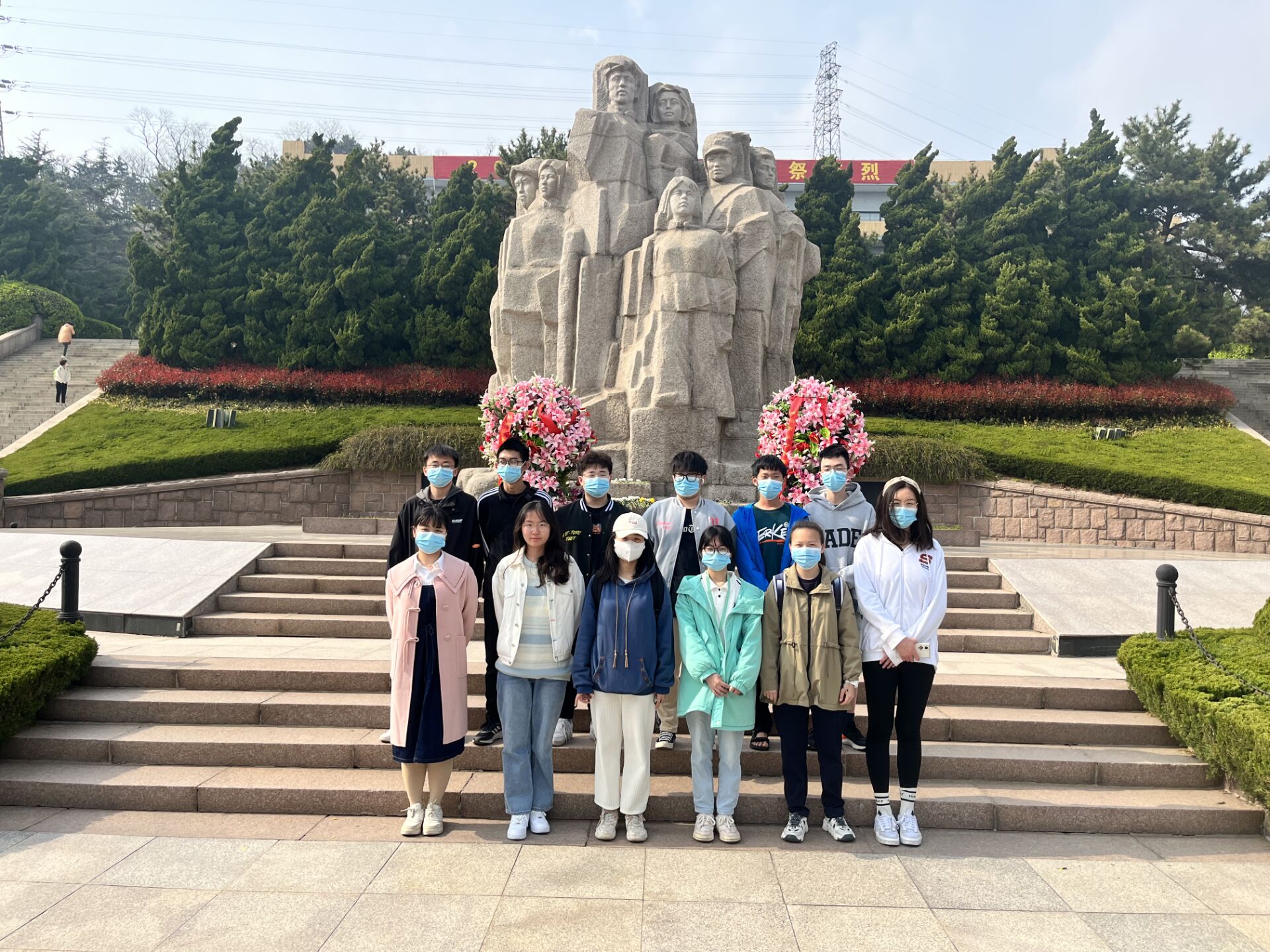 数学2203团支部前往青岛革命烈士纪念馆,全体参与同学在纪念碑下齐唱国歌、重温入团誓词。随后,同学们分批参观烈士纪念馆,对纪念馆中各个英雄烈士进行默哀并在烈士墓与英雄墙前为英雄们献花,以此表达对烈士们深深的哀悼与敬意。最后同学们再次集合,在纪念碑前集体朗诵《革命烈士永垂不朽》,感怀革命烈士。