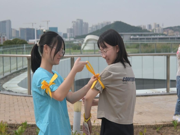 活动准备系丝带 邓卓浩摄