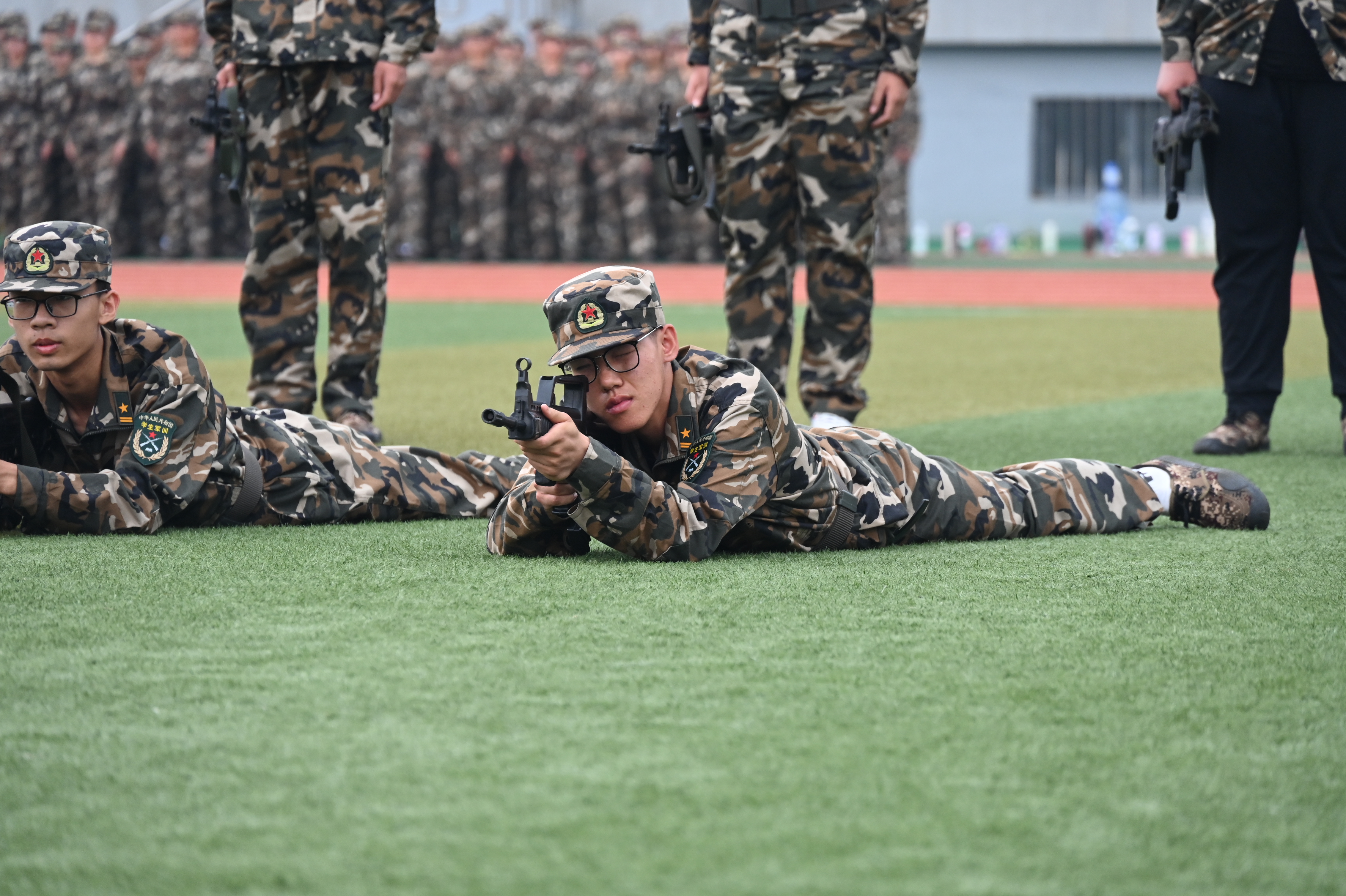 9月5日,随着军训进程的不断深入,十三营正式踏入战术训练阶段。训练伊始,教官手持模型枪,生动展示了单手与双手持枪的标准姿势。他们不仅详细解析了其中的动作要点与难点,还耐心演示了如何持枪匍匐前进。随后,新生们开始实际体验。教官们巡视于队伍之间,对新生的每一个动作进行细致的指导,并及时纠正他们的误区。