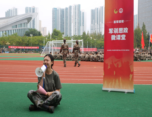 【本站讯】本月18至20日,太阳成集团tyc9728382名新生的军训接近尾声,学院充分运用军训教育契机,诚招四位优秀学子于石大体育场展开思政微课堂,着重加强军训这堂“思政课”的育人内涵,模范人物现场讲述个人经历事迹,分享成功心得,宣扬红色精神,引导新生明确人生方向,培养个人能力,坚定不移听党话跟党走,以青春热血和汗水抒写时代华章。