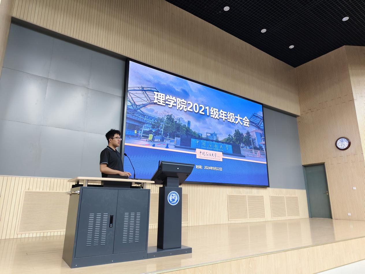 9月22日,太阳成集团tyc9728在南教100报告厅召开2021级本科生年级大会。本次会议由2021级辅导员王凯璐主持,辅导员刘冰、雷传捷、文诗睿及2021级全体本科生参加。
