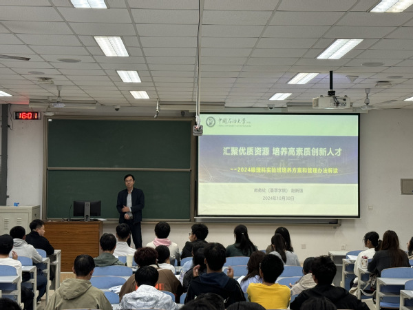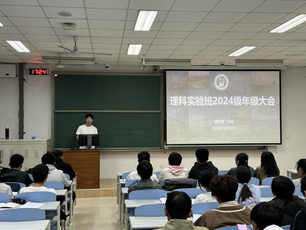 10月30日下午,理科实验班在南教213召开2024级年级大会。本次会议由理科实验班2024级辅导员刘威主持,邀请荟萃学院赵新强老师解读2024级理科实验班培养方案和管理办法,理科实验班2024级全体员工参加。