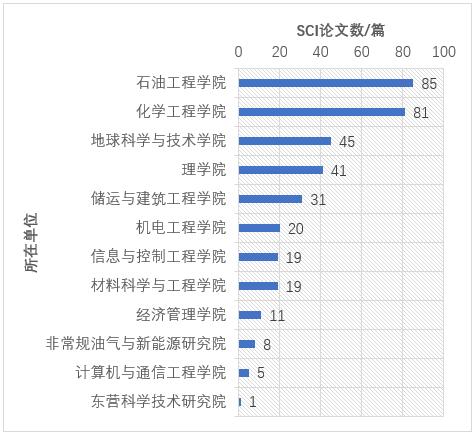 图中数字为论文篇数,占比。例如石油工程学院1区论文2篇,占比2%